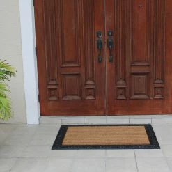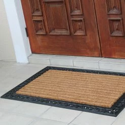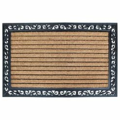 More than a decorative enhancement this rubber and coir molded doormat is made with a heavy rubber backing that anchors it in place while you brush dirt and debris from shoes and boots. The tufted coco-fiber facilitates scrubbing soles clean.