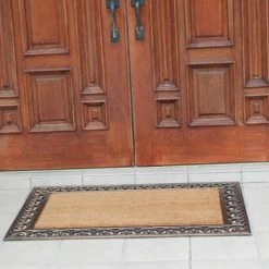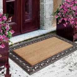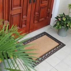 More than a decorative enhancement this rubber and coir molded doormat is made with a heavy rubber backing that anchors it in place while you brush dirt and debris from shoes and boots. The tufted coco-fiber facilitates scrubbing soles clean.