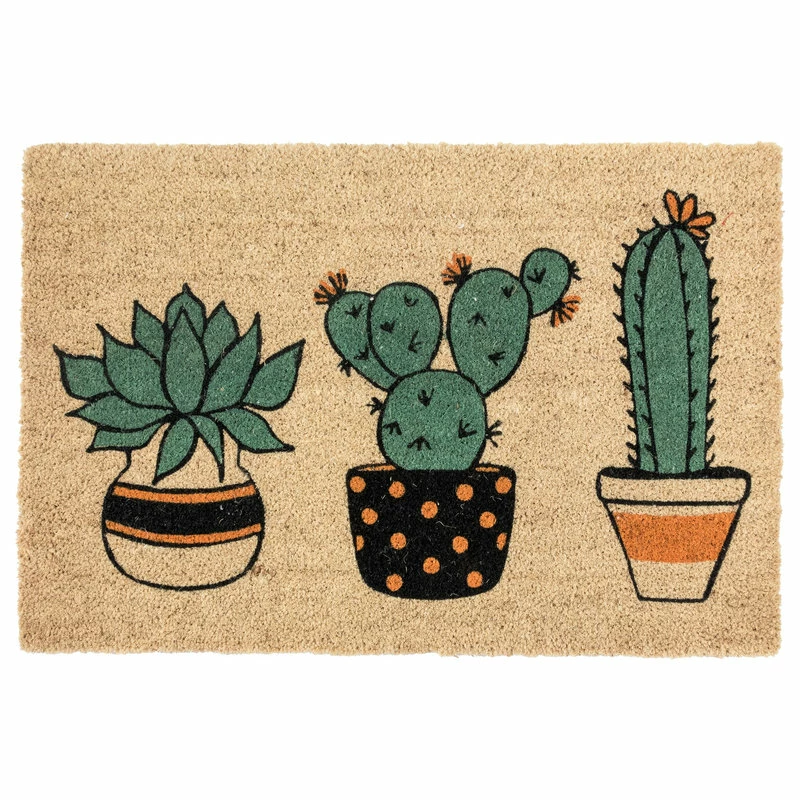 Plant your feet on this fun doormat and keep dirt out of your home. Made of natural coir, a durable, dense fiber that scrapes shoes clean. Weather tolerant and colorfast, coir doormats absorb moisture and retain their shape.