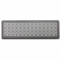 Ideal for the area near a sink or alongside your kitchen aisle, this comfort mat will enable you to cook/clean/stand for hours without putting the additional stress on your soles. The traditional black and white geometric pattern adds a modern farmhouse flare to your floors while providing comfort to your feet. Lannister Anti-Fatigue Comfort Long Mat contains 1 piece on 1 sheet that measures 60 x 20 inches. This product measures 60-in x 20-in x .5-in when assembled. Anti-fatigue comfort mat with a black and white geometric design. Anti-Fatigue Comfort Mats are made of non-toxic materials that are phthalate and formaldehyde free. Perfect for kitchens, laundry rooms, home offices, and more!. Liquid resistant surface. Mats are available in two sizes: smaller mats measure 20-in x 30-in and larger mats are 20-in x 60-in long. Slip resistant backing.Designed for interior use only.