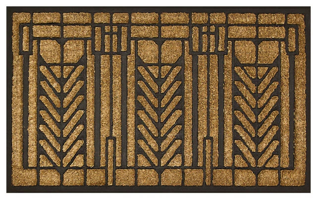 The Frank Lloyd Wright Tree of Life Design Doormat is inspired by several variations of this design with its strong horizontal lines and planes in Wrightβs Darwin D. Martin House. This doormat is constructed in coir fiber pressed into a natural rubber base. The generous proportions of this mat are 36 inches by 22 inches. Please note that it is ONLY available with “GROUND” shipment selection within the continental U.S.