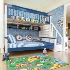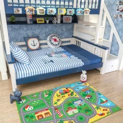 - Contemporary Design: This indoor floor rug features a graphical image of a city street map in an attractive color pallet. It is a great way to teach your kid about the various locations and places in fun-filled manner.