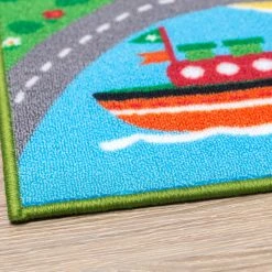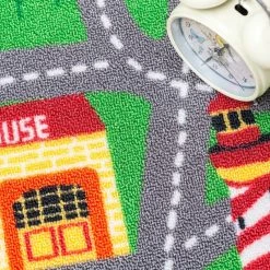 Floor Rug: Designed to capture the attention of young minds, this machine-made rug is a perfect way to engage your little one into learning and play at the same time. It is ideal for playrooms, daycare centers, kindergarten and nurseries. Materials Used: Designed using premium quality nylon fiber, this floor carpet offers a soft and comfortable spot for kids play. The rubber backing prevents it from slipping away, reducing the risks of accidental falls. Contemporary Design: This indoor floor rug features a graphical image of a city street map in an attractive color pallet. It is a great way to teach your kid about the various locations and places in fun-filled manner. Easy Maintenance: To ensure that the cleaning sessions remain less hectic, the kids play area rug comes with a stain resistant surface. It has a lightweight and can be quickly folded and kept aside to utilize the space.