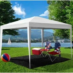 Outdoor Turf Rugs from House, Home and More are great for use under party/event and canopies. Also great for outdoor recreational purposes! Made of UV-protected outdoor artificial turf (approx. pile height is ) with a light-weight marine backing. Hemmed on all edges to prevent fraying. Includes FREE rug stakes that allow you to secure the reinforced grommeted corners to the ground. Stakes have a low profile to provide a smooth walking surface. Easy to clean – just hose off and dry! Made in the U.S.A. This listing is for the Outdoor Turf Rug only. Canopy/tent not included.
