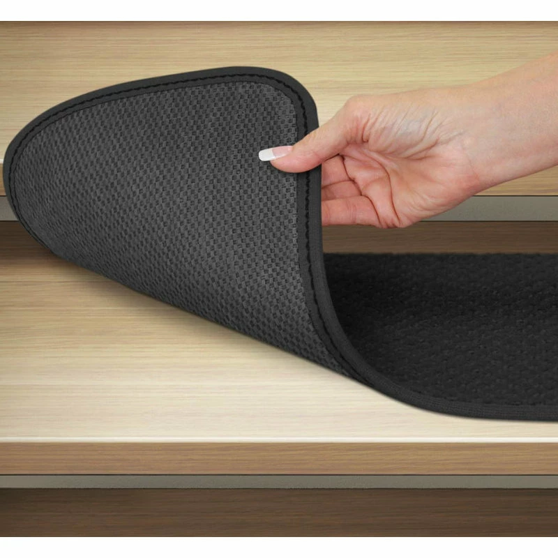 House Home & More Skid-Resistant Carpet Stair Treads work great on most hard stair surfaces including wood, tile and marble! These stair treads feature a thick, premium, skid-resistant rubber backing to help create a safer, more secure, slip-resistant walking surface for you and your family including your dog or other pets. They can be placed directly onto your stairs to help protect the surface and create additional traction. Although these carpet stair treads do have a skid-resistant backing, they do not attach to your steps. To ensure that they do not move, you may also apply double-sided tape or carpet tacks (not included). Made of high-quality olefin carpet to resist stains and bound on all edges to prevent fraying. These stair treads are easy to clean with a hand-held vacuum or hose attachment and can also be spot cleaned. Due to the skid-resistant rubber backing these stair treads are not machine washable. These carpet stair treads feature a thick, premium, skid-resistant rubber backing to create a safer, more secure walking surface for your family and pets