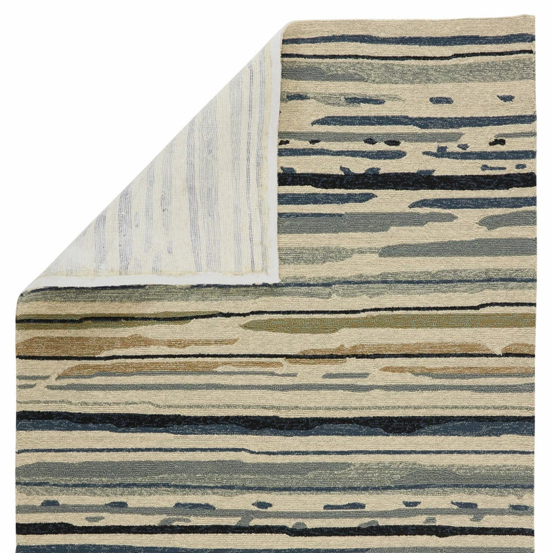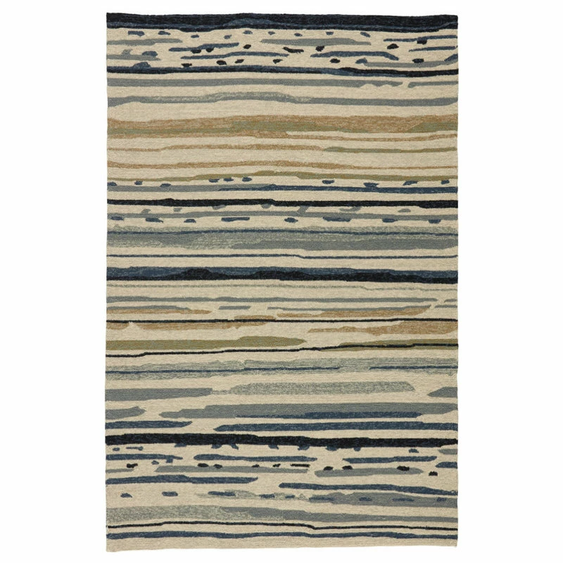 This contemporary area rug enlivens indoor and outdoor spaces alike with a touch of color and durable polypropylene looped construction. Easy to care for and stylish, this whimsical layer boasts a brush stroke-inspired abstract design in cool tones of blue and green on a bright silver backdrop.