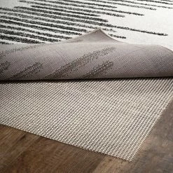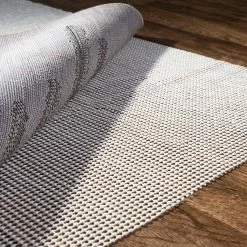 Protect your new rug and your floors with a non-slip rug pad. Made in the USA, our PVC rug pads are latex-free and made for use on tile and hardwood floors. Durable waffle-weave construction helps to prevent soil and moisture buildup, while protecting your floors from the textured backing of the rug. If you have LVT, vinyl, or laminate floors, be sure to check the flooring manufacturer’s specifications before choosing a rug pad. Features:
