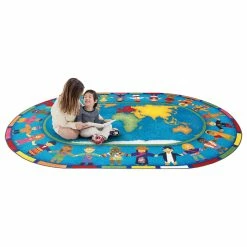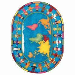 This irresistable classroom carpet with soft blended colors will spark lively discussions about world unity. Children will enjoy identifying each child’s home continent represented by the colored bars in the carpet border. Students can discuss the clues portrayed by dress to determine the nationality of the child and the culture of the country.