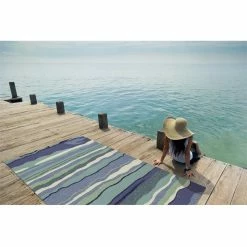 Harbor 4216 Ocean Lagoon 2′ x 3′. Hand-Made of 100% UV Treated Polypropylene Hooked for Indoor/Outdoor Living with No Backing. Made in China. Vacuum with floor attachment if needed. Blot spills immediately. Spot clean stains with mild detergent and white cloth. If used outdoors, rug can be hosed off and dried on a flat surface.