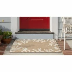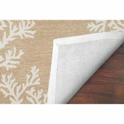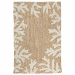 This hand-hooked area rug features a neutral beige background white a coral motif border. A classic, subtle tropical motif, this rug will effortlessly compliment any space inside or outside your home. Made in China from a polyester acrylic blend, the Capri Collection is hand tufted to create bright multi-toned detailed designs with a high-quality finish. The material is flatwoven, weather resistant and treated for added fade resistant making this the perfect rug for indoor or outdoor placement. This soft, durable piece is ideal for your patio, sunroom and those high traffic areas such as your entryway, kitchen, dining room and living room. A fresh take on nautical style, these area rugs range in style from coastal to tropical motifs that beautifully accent your home decor. Limiting exposure to rain, moisture and direct sun will prolong rug life.