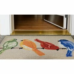 Create a welcoming entryway with our charming Birds rug which adds color and character to any indoor or outdoor space. Hand hooked of weather-resistant fiber, this collection is a blend of comfort, softness and durability. Frontporch is remarkably easy to clean and treated for added fade resistance. Limiting exposure to rain, moisture and direct sun will prolong mat life.