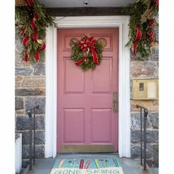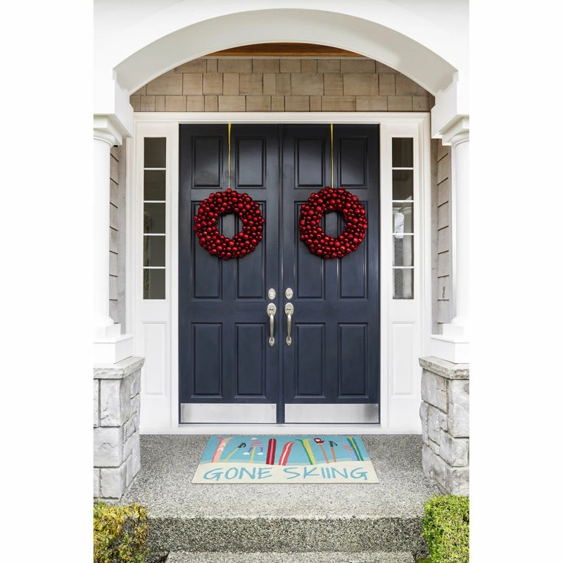 “Gone Skiing” serves as both a welcome and state of mind. Skis and poles in bright colors such has light blue, pink, red and yellow wait in the snow for their next run down the mountain. This happy scene makes this mat the perfect accent to welcome guests at your door, at your kitchen sink, or in any space inside or outside your home. Made in China from a polyester/acrylic blend, the Frontporch Collection is hand tufted to create detailed designs with intricately blended colors for a high-quality finish. The material is hand hooked to create both softness and durability with weather resistant and added fade resistant treatment that is remarkably easy to clean. These pieces are perfect for you patio, entryway, bathroom, laundry room and kitchen making this the ideal indoor or outdoor rug. Fun, casual and unique these vibrant, crisp and detailed patterns range from coastal, farmhouse, novelty sayings, pets and traditional designs to perfectly accent your home. Limiting exposure to rain, moisture and direct sun will prolong rug life.