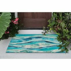 Bold and contemporary, this mat adds striking design with undulating lines in shades of blue, green and aqua. This pattern is sure to make an impact and add bright design to any space in your home. Made in Turkey from 100% Polyester, the Illusions Collection uses a machine made technique to create vibrant, impressive and realistic designs. Each pattern is designed with crisp lines and color definition that are also low-maintenance. This collection is low profile, hypoallergenic, machine washable and super durable. Material is treated for added fade resistance and has a rubber non-skid backing, making these rugs perfect for high traffic areas both inside and outside your home. Limiting exposure to rain, moisture and direct sun will prolong the rug life.
