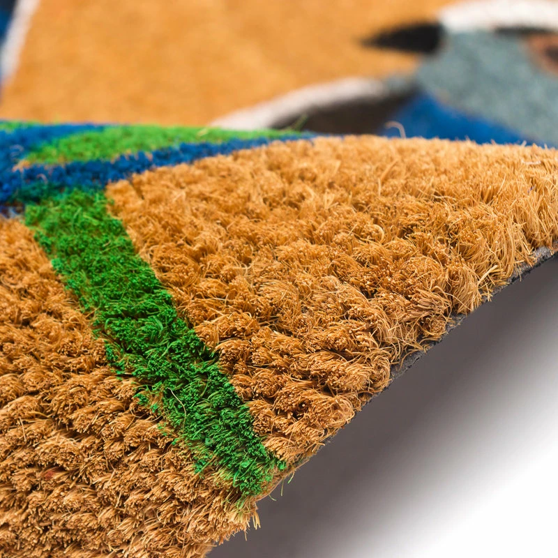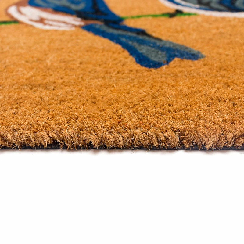 Our lively Blue Birds mat adds a splash of color and charm to your doorstep. This coir utility mat is both stylish and practical. Natura coir doormats are durable and beautiful. Crafted from 100% coir which is an all-natural material known for its strength. Coir is eco-friendly, made from natural fibers which are extracted from the outer shell of a coconut known for its strength and durability. Natura coir mats feature a durable vinyl back and a stiff, durable natural coir front perfect for wiping shoes before entering the home, keeping it tidy. They are available in a wide variety of designs ranging from classic and inspirational to nautical patterns. Dyes saturate the fibers for long-lasting color.