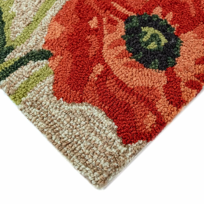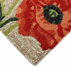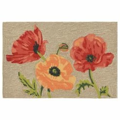 This hand-hooked area rug features oversized poppies in incredible detail. This nature inspired design will effortlessly compliment any indoor or outdoor space. Made in China from a polyester acrylic blend, the Ravella Collection is hand tufted to create vibrant multi-toned detailed designs with tight textural loops and a high quality finish. The material is flatwoven, weather resistant and treated for added fade resistance, making this area rug perfect for indoor or outdoor placement. This soft, durable area rug is ideal for your patio, sunroom or those high traffic areas such as your kitchen, living room, entryway or dining room. Intricately shaded yarns bring to life the nature inspired designs of this collection that will beautifully accent your home. Limiting exposure to rain, moisture and direct sun will prolong rug life.