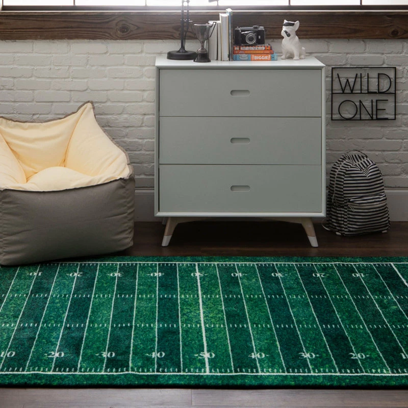 A realistic depiction of a football field makes the Mohawk Home Football Yards Area Rug perfect for the young sports fan in your home. The natural green palette with the dynamic football field print makes it a fun addition for your child’s bedroom or playroom. Made with exclusive EverStrand, a premium polyester yarn created from post-consumer recycled plastic bottles, this eco-friendly rug offers sumptuous softness and rich colors with the dependable durability needed for busy households. Available in 5×8, 8×10, and other popular sizes, this area rug is a great choice for adding style to a variety of spaces in your home.
