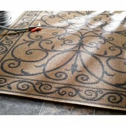 The Krem Brown Outdoor/Indoor Rug by nuLOOM is the third largest of six sizes and features a stunning floral scroll design in sophisticated black and natural colors. It will enable you to make the most of pleasantly cool evenings on the patio by bringing the elegance of your home outdoors with you. nuLOOM combines traditional design and neutral colors with contemporary materials resulting in this functional and charming piece that will provide cozy warmth whether you are indoors or out.