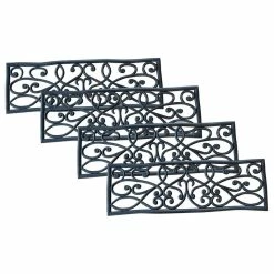 No more slippery steps, near misses or wipeouts. Use the Offex 4 Pack Rubber Scrollwork Stair Tread to give your stairs a decorative, non-slip surface anywhere you need one. Sold in a 4 pack, the heavy duty rubber Stair Tread is great for the front steps, or anywhere that gets lots of foot traffic, the scrollwork design is as beautiful as it is functional. The back has a texture that help keep the Rubber Mat from sliding around in the rain or snow, while the open design lets dirt, rain and snow pass through. When needed, the Stair Treads are easy to clean, just spray of with the hose, or scrub with mild soap.