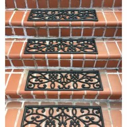 No more slippery steps, near misses or wipeouts. Use the Offex 4 Pack Rubber Scrollwork Stair Tread to give your stairs a decorative, non-slip surface anywhere you need one. Sold in a 4 pack, the heavy duty rubber Stair Tread is great for the front steps, or anywhere that gets lots of foot traffic, the scrollwork design is as beautiful as it is functional. The back has a texture that help keep the Rubber Mat from sliding around in the rain or snow, while the open design lets dirt, rain and snow pass through. When needed, the Stair Treads are easy to clean, just spray of with the hose, or scrub with mild soap.